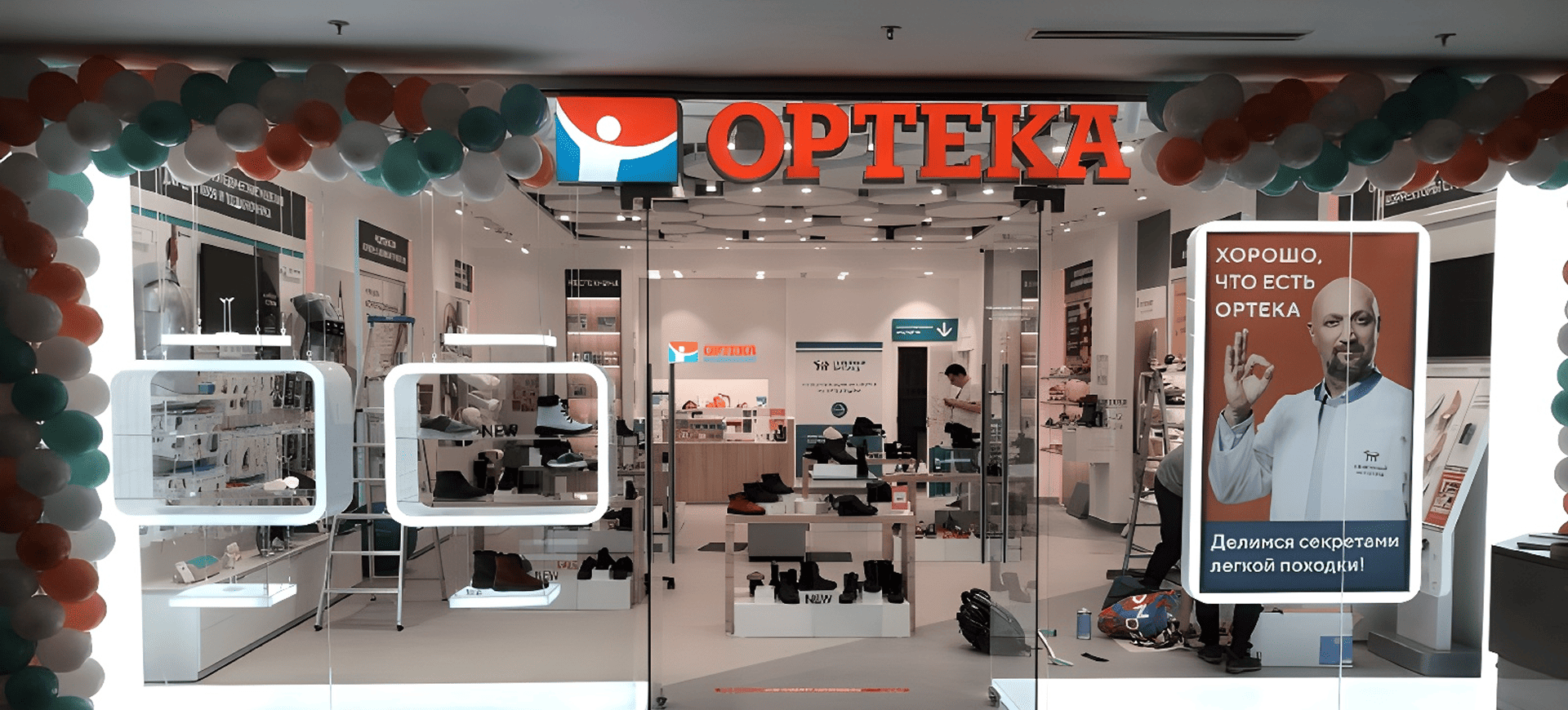 Производство и монтаж входной группы в магазине “Ортека” Афимолл Сити